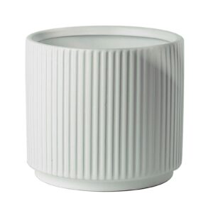 White Ribbed Ceramic Plant Pot with Bamboo Stand 14.5 x 14.5 x 19cm