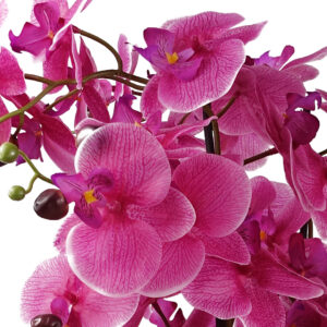 Add a splash of beauty to any room. Our artificial orchids come in an array of colours and require no maintenance. All our orchids come ready potted and can be displayed straight out of the box with no messing around. If you want to re-pot your orchid to get a different look that is easy to do – simply pop it straight into a larger planter and cover with soil, bark or gravel and you have an instantly beautiful artificial orchid.