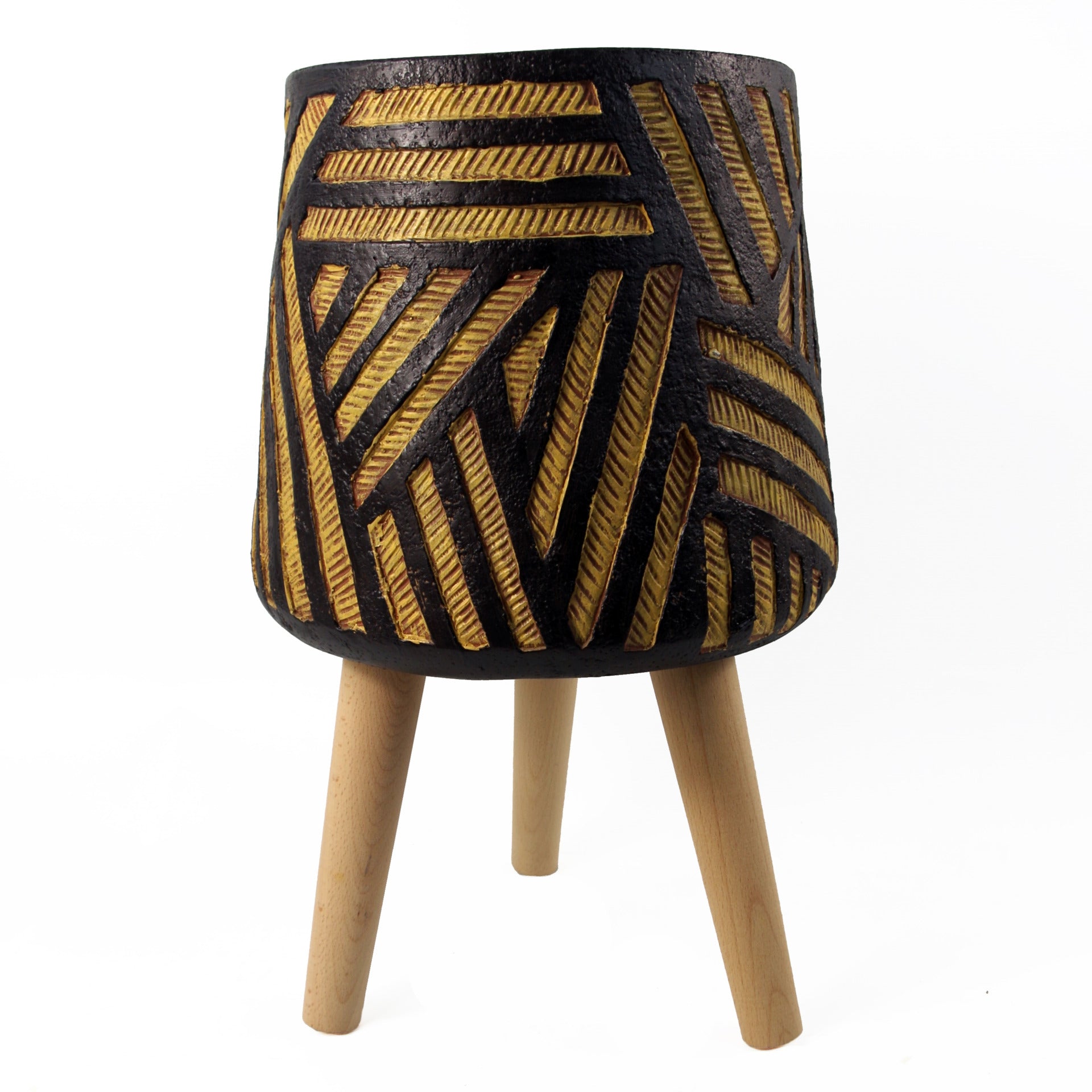 45cm x 28cm Bali fibreglass composite Planter. Large fibreglass composite planters, hand finished in a rustic style. Available in a range of designs and sizes. Large planter ideal for either artificial plants or real ones. Designed for indoor use but can be used outdoors in a sheltered position, we recommend protecting from extremes of weather. Overall size: 28 x 28 x 45cm. At the widest point this pot measures 28cm. The top rim has a diameter of 23cm. The inner hole diameter is 18cm, any of our plants with starter pots smaller than this and all our bare stem plants will fit perfectly inside this planter. Legs measure 20cm. Top planter measures25cm x 28cm. Please see images for a size diagram. No drainage holes so suitable for watering indoor plants. Intentional Rustic finish. Comes requiring minor assembly by screwing on legs - the legs are double threaded so by twisting the bolt the opposite direction you can extend or reduce the length of the screw part that fits into the planter. Material: Fibreglass composite. Legs: Wood