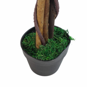 - Leaves are silk so this tree is not suitable for outdoor use. Stem is wood with twisted vine detail.