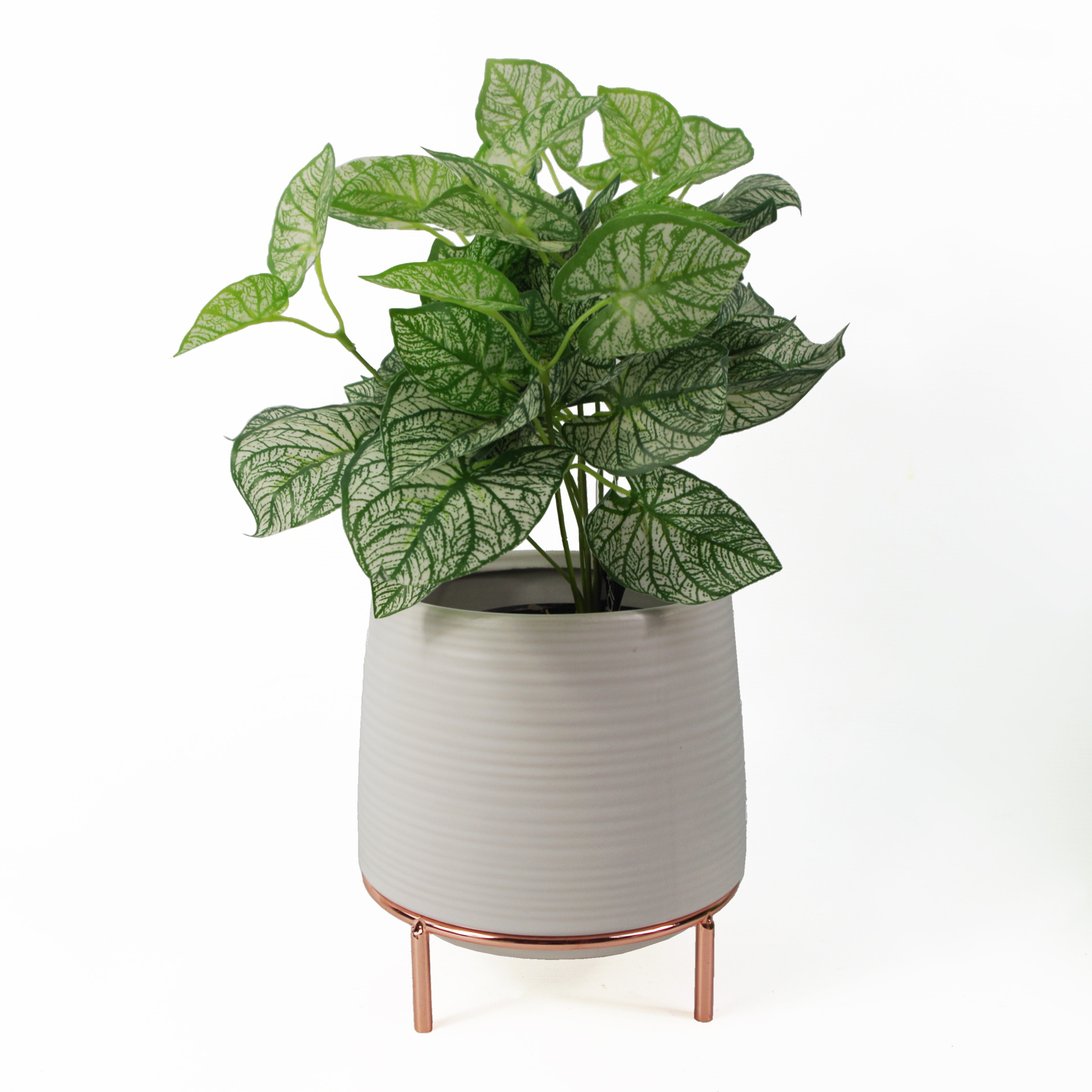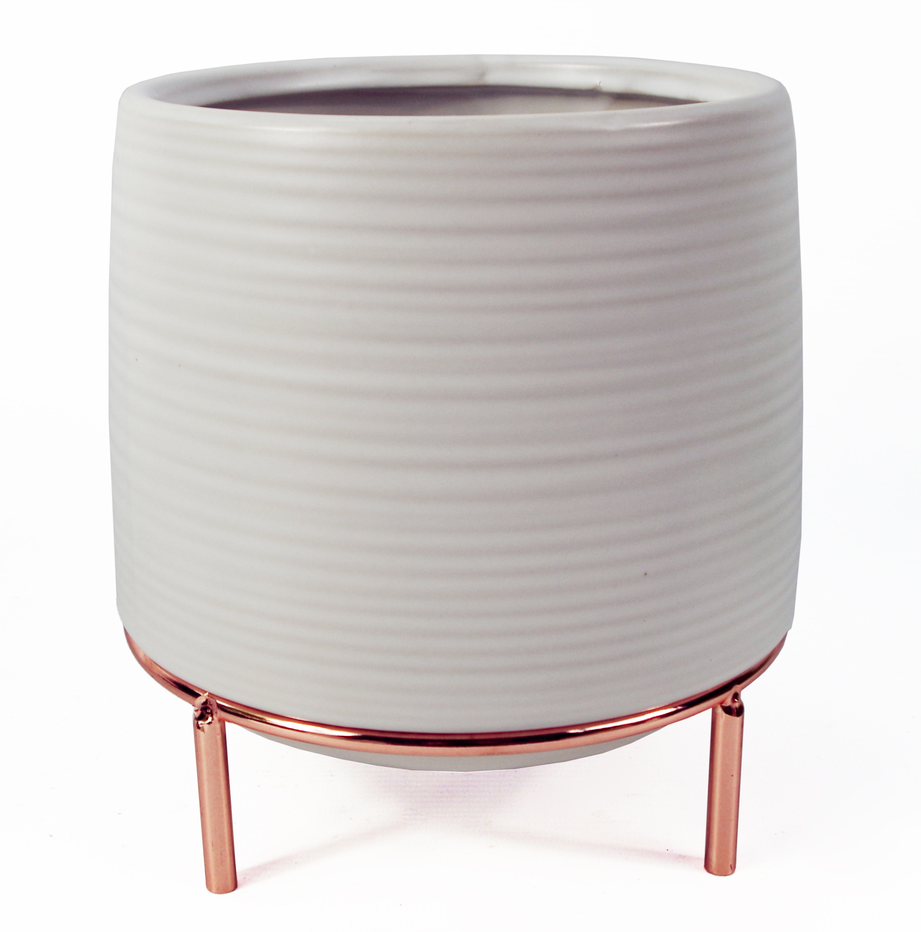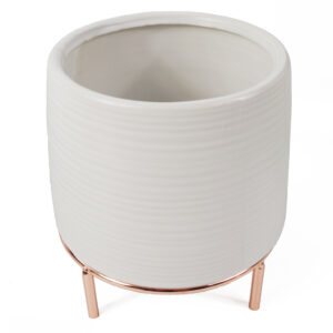 18cm White Ceramic Planter with Metal Stand
