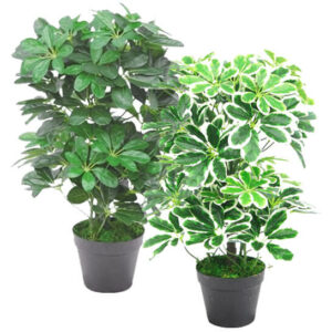 These stunning rich green plants also known as ‘Dwarf Umbrella Trees‘ are native to Taiwan and part of the ‘Araliaceae’ family of plants. Our artificial versions are totally child and pet safe (unlike the real plants which are actually poisonous). These look brilliant just about anywhere in your home but look particularly nice in conservatories or windowsills. These are highly realistic artificial plants.