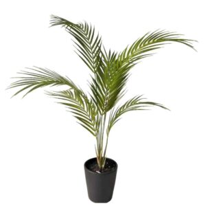 This 70cm Artificial Areca Palm Tree is beautifully presented in a black plastic pot as shown. Areca palms are renowned for their feathery, arching fronds and vibrant green foliage, often found in tropical and subtropical regions where they add a lush, calming presence. Known for their air-purifying qualities and elegant form, Areca palms are a popular choice for brightening up homes and offices alike. This artificial Areca palm tree captures the graceful shape and rich colour of the real plant without any of the maintenance. Unlike living palms, which require regular watering, suitable light, and careful attention, this low-maintenance alternative stays fresh and vibrant all year round. The sturdy black pot can be easily placed inside a decorative planter (not included), allowing you to customise the look to suit your decor. Perfect for those seeking the beauty of tropical greenery without the fuss, this artificial Areca palm offers enduring style and effortless charm to any space.