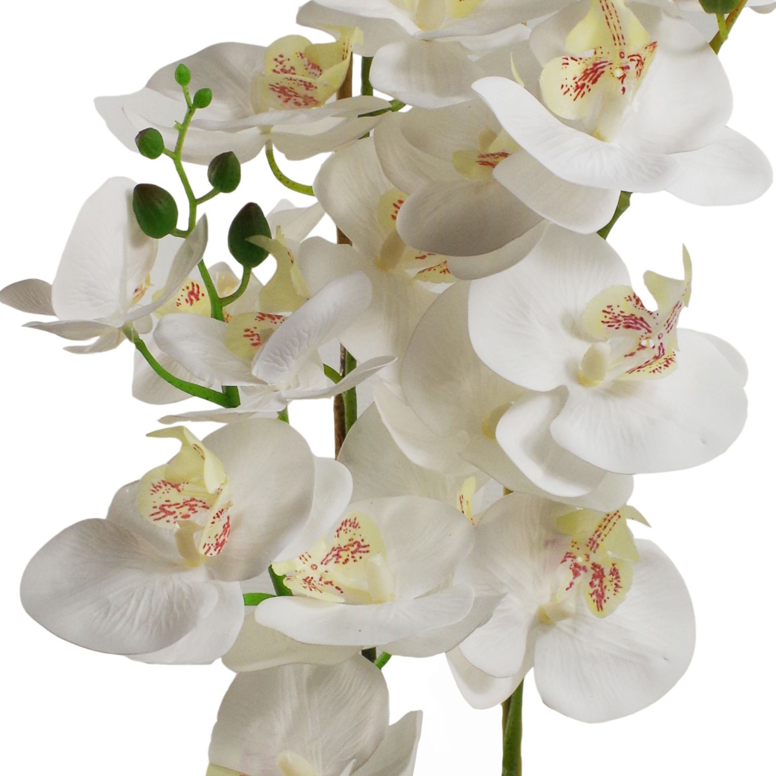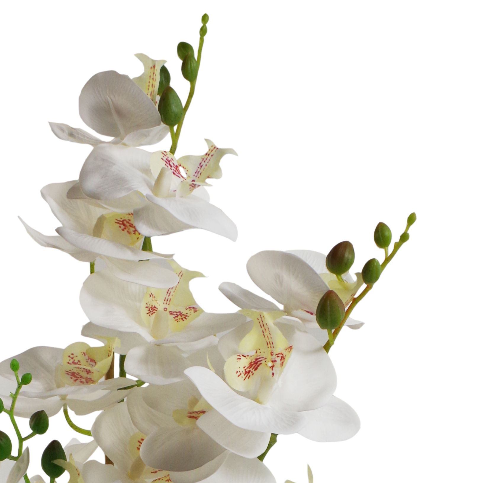 Leaf Design UK Artificial Orchid Natural Look – 70cm White Black Ceramic Planter. Overall size as arranged in our photos: 70cm tall x 30cm x 30cm . Comes fully assembled requiring only minor arrangement to suit your space.. Comes in a Ceramic pot as shown. Pot Measurements: 14cm (d) x 10cm (h) approx.Stems are wired and can be shaped to your requirements.High quality plant from Leaf Design UK.