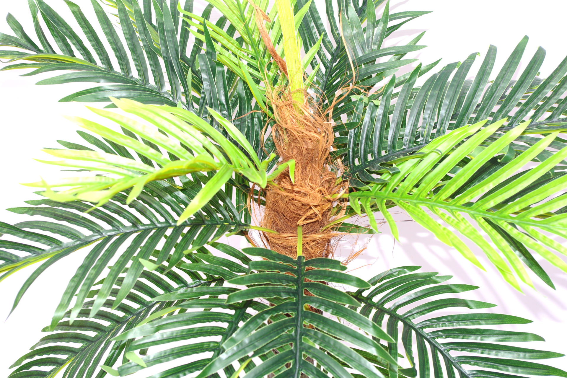 Our stunning artificial palm trees add a splash of colour to any room without any of the hassle or maintenance of real palms. This realistic artificial tree stands 90cm (3ft) high and is incredibly lifelike. It has wired stems and plastic leaves. It has a realistic ridged painted trunk which is incredibly lifelike.